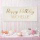 Cream and gold "Happy birthday" party banner customized with the name of the guest of honour.