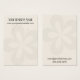 This subtle card features template space holders for adding your business contact details to both the front and back. The background colour was set to a soft creamy off-white, over which the faintest opaque simple graphic flower image was placed overlaying it creating a subtle cream-on-cream effect. Like the background colour, the black text can be changed to any colour or other font choice you prefer.