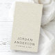 Modern, vertical business cards with your name and title on the front on a cream coloured printed linen look background. Customizable template fields for your contact information and logo on the back. You can move and resize elements with the design tool.