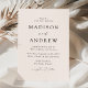 Minimalist, modern wedding invitation featuring your wedding details in black lettering with calligraphy script accents. The cream-coloured background can be changed to a colour of your choice. Designed to coordinate with our Modern Elegance wedding collection.
