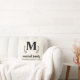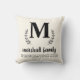 Cream Pillow with Big Family Initial, Name, and Holiday with grey silver Wreath. Elegant Thanksgiving Decoration.