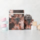 Cream, terracotta flowers on a dark brown wrapping paper