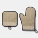 Cream White Faux Burlap and Lace Oven Mitt & Pot Holder Set