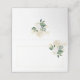 Watercolor wedding folded place cards with cream and white roses, gold glitter, and gold and green leaves and other greenery. The template is easy to personalize if you choose to change the text. The back of the card is a leaf pattern in a shade of green that matches the flowers on the front. If you would prefer a solid shade of green for the background, just delete the image.