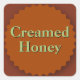 Multipurpose honey jar label for your choice of Creamed Honey, Raw Honey, Local Honey, We Love Honey or Save The Bees at the centre of red and golden amber stickers for the top cap or side of smooth mason jars and other honey containers. Find other small honey jar stickers and labels in our store for nutrition facts, honey granulation and infant warning labels.