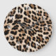 Creamy Brown Black Leopard Print Animal Wedding Large Clock