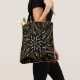 Tote Bag all over print shoulder style fashion statement stylish storage accessory printed with a Creamy Golden Yellows Raked Pattern On Black six sided symmetrical repeat patterned geometrical original graphic art design illustration by TheFabricSeal at Zazzle #ZazzleMade https://www.zazzle.com/store/thefabricseal