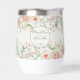Peach Orange Coral Floral Mother of the Bride Thermal Wine Tumbler. Radiating the warmth of a summer sunset, this Peach Orange Flower Arrangement embodies timeless bridal elegance. Soft peach and orange hues intertwine in a captivating cascade of roses, ranunculus, and dahlias, evoking romance and joy on your special day. Personalize with your name and bridal party title of your choice to make this as individual as you are.