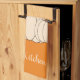 An bright orange kitchen towel with two creamy white pumpkins . Personalize it with a name . Look for our matching pattern towel .