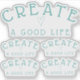 Here's a great reminder for you x 5: a set of 5 "create a good life" stickers in teal print. Add them to your favourite things, and you still have enough to share the love and encouragement with friends.