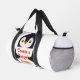 I actually had been searching other sites for a duffle gym bag and I couldn't find any. This one is just what I was looking for with all the features. The inside zip pocket, the outside mesh pocket and LOTS of room inside. Love the printing. Really like how the floral print turned out.