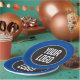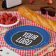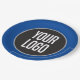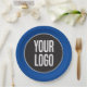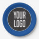 Add your brand logo to make an elegant cocktail paper plate with a blue background for your business party.