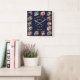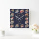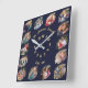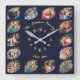 Create Custom Family Photo Collage Navy Blue Gold Square Wall Clock