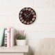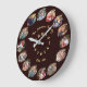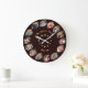 Create your own custom, personalized, cool, unique, modern, elegant faux gold calligraphy typography script font on dark brown background, one-of-a-kind, memories, graffiti / torn photo effect 14 photo collage family keepsake classic round shape wall clock. To customize, simply type in your family name & year, and add fourteen of your favourite family / couple / kids / baby / pets / wedding / travel photos. While you add / design, you'll be able to see a preview of your creation, throughout. Perfect for your home, living room, kids room. office. Makes a great gift for birthday, fathers day, mothers day, christmas, holidays, wedding, marriage anniversaries, valentine’s day, grandparents day, family reunions, friendship day, milestone birthdays, remembrance, memento, and more, for your loved ones, girlfriend, boyfriend, mom, dad, husband, wife, parents, grandparents, grandma, grandpa, couples, newlyweds, bride, groom, new parents, pet dog / cat / puppy / kitten owners, friends and family.