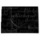 Front side: a pattern with your Name in different font styles on black (custom colour) Back: full name with name-initials