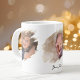 Create your own custom, personalized, elegant black handwriting calligraphy typography script font, microwave and dishwasher safe, strong, ceramic, cool unique graffiti / torn photo effect giant big huge jumbo size tea / coffee / chili / ice-cream / soup mug. To customize, simply type in your text, and add 3 of your favourite family / couple / kids / baby / pets / wedding / travel photos. While you add / design, you'll be able to see a preview of your creation, throughout. Makes a great gift for birthday, fathers day, mothers day, christmas, holidays, wedding, marriage anniversaries, valentine’s day, honeymoon keepsake, grandparents day, family reunions, friendship day, milestone birthdays, remembrance, memento, and more, for your loved ones, girlfriend, boyfriend, mom, dad, husband, wife, couples, newlyweds, bride, groom, new parents, pet dog / cat / puppy / kitten, espresso / coffee lovers, friends and family.