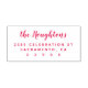 Easily personalize these custom Create Family Name Script Return Address self-inking rubber stamps with your own names and address. To customize these rubber stamps, click on "Personalize this template" and change the text in the boxes provided. Available in 9 different colours and 6 sizes. Please view your design on the monitor as close to actual size as possible to ensure that the text prints at the expected size. For use as a return address stamp most people will require a larger size than this. These return address self-inking rubber stamps stamp up to 10000 impressions with each cartridge, have a soft touch for secure grip and ink-free fingers and an eco-friendly manufacturing process. No minimum order quantity.