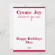 Place a colourful ornament on a new tree and create joy for everyone who walks by. Create Joy Christmas Holidays Ornament Pine Tree Party Holiday Card. A few years ago, someone placed a lone red ornament on a young pine tree in a park, giving me a little bit of joy on an otherwise grey and gloomy December day. Reminiscent of the Christmas tree in that famous holiday TV cartoon, the single red ornament is a reminder that each of us has the power to create joy everywhere and anywhere we are, whenever we can. Design description: A black and white photograph of a lone young, scraggly pine tree, with several small branches at the top, but very empty at the bottom. Along a lower branch, a red ornament brightening the photo. Above that branch, a template with the word "create." To the right of the branch and on the other side of the skinny trunk is the word "joy." Both words are in a bright happy red. On the back, at the top and the bottom is a red line in a slighter darker red taken from the colour of the ornament. The text on the back is all in red and can be changed. The text contains templates. The two templates at the top read, "Create joy," "whenever you can." There's then a blank spot in the middle for you to write a personal message or your names or past a small photo or otherwise personalize it. At the bottom are two more templates, which read "Happy Holidays" and "20xx".