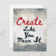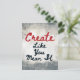 A lovely art themed typographic piece with the words "Create Like You Mean It". It's beige and grey with black and red text and white accent beneath the quote.