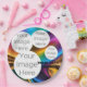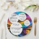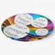 Create your own unique party paper plate with this vibrant rainbow swirl design and a metallic-inspired look. Add up to 4 personal photos and customize or delete the text for a modern or unicorn-themed style. A fun, one-of-a-kind touch for birthdays, baby showers, or any celebration!
