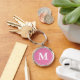 Create your own custom, personalized, modern, cool, chic, trendy, simple, minimalist, stylish, elegant white monogram on girly pink background, round silver coloured metal keychain / keyring. Simply type in your initial / monogram, to customize. While you add / design, you'll be able to see a preview of your creation, throughout. Makes a great gift for birthday, graduation, fathers day, mothers day, christmas, holidays, wedding, marriage anniversary, valentines day, and more, for your loved ones, kids, mom, dad, wife, husband, girlfriend, boyfriend, grandparents, family and friends.