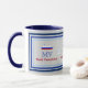 An elegant and modern monogrammed design of a blue square frame, ships and anchors... with custom name and initials of the captain of the seven seas