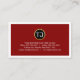 Cover features an upper dark red layer that is encapsulated by a white rectangular frame. At the top is an empty gold circle logo where you can place your name initials-monogram (You can use different sizes of fonts or styles to your liking). Just below this lies your prestigious name, job title with the contact details at the base of the card.