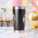 Create your own custom photo insulated tumbler. This tumbler cup features two of your favorite pictures in a circle shaped watercolor brush stroke frame and personalized text for any occasion. A great gift for family and friends or your own photo memory keepsake.