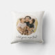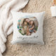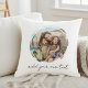 Create your own custom photo throw pillow. This cushion features two of your favorite pictures in a circle shaped watercolor brush stroke frame and personalized text for any occasion. A great gift for family and friends or your own photo memory keepsake.