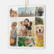 Create your own custom photo collage Christmas ornament featuring 7 of your favorite picture memories. Reverse side featuring Merry Christmas or custom text in minimalist calligraphy alongside name and year.