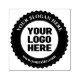 This modern "Your Logo Here" rubber stamp features a badge with custom logo, slogan and site.