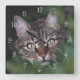 A simple and minimal custom cat photo square wall clock featuring one photo and white clock numbers. Simple to customize by adding one of your own photos.