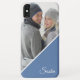 This design features an abstract blue and white shape with a personalized name and where you can add your own photo or image. Personalize by editing the text in the text box or delete the text for no name.