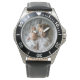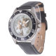 My husband loves the watch, he likes the dial, the graphics, the band, and it keeps perfect time.