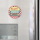 Create your own custom, 1950's style diner sign refrigerator magnet using this easy template. These cool retro magnets have a slightly distressed red-and-white chequered background with a sign on top that says "DINER" and "OPEN" in neon with space for you to add your own first or last name - or any other word you'd like. The sign also has a lighted arrow graphic. Just fill in the easy diy template or click "Customize It" if your text runs long & you need to resize, rearrange or change text colours & fonts. Perfect for your diner, home kitchen, 50s theme bar or fifties party.
