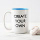 Create your own LARGE BLUE TWO-TONE MUG from a fully customizable personalized blank template - for coffee, hot chocolate, tea - dishwasher and microwave safe, with colour options on Combo and Ringer mugs: Black, Green, Brown, Navy, Light Blue, Pink, Orange, Yellow, Lime - for photo, image, logo, graphics, text, or your own customized design creation. Create, design and make your own Christmas or birthday gifts, wedding favour, or promotional business product from a fully customisable, personalised custom printed official Zazzle design template. THESE QUALITY MUGS ARE A BULK BUY MULTI-BUY DISCOUNT PRODUCT - buy more and save with regular huge sale savings too! CUSTOM MUG STANDARD DISCOUNTS ARE: 25 mugs = Save $1.00 each. 50 mugs = Save $2.00 each. 100 mugs = Save $3.00 each. 250 mugs = Save $4.00 each. The best quality product and print, range of mugs (giant, classic, white, large, colour ringer & combo, magic, espresso cups ...), and top discounts, make this perhaps the best store to buy promotion mugs or mug gifts anywhere online.