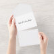 Personalized All-In-One invitations are a unique combination of both a beautifully printed custom invitation with an easy-to-tear-off perforated RSVP postcard. And they are so easy to use! You simply fold, then seal the back flap with the three included clear stickers, and mail. When your guests receive your custom invite, they just tear the perforated RSVP Card off and drop it back in the mail to you!