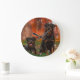 A simple and minimal custom dog photo round wall clock featuring one photo and white clock numbers. Simple to customize by adding one of your own photos.