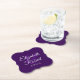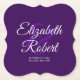 Create Your Own Elegant Wedding Bride Groom Name Paper Coaster. Easily change the background colour from purple and white to another, if desired. Choose the shape of the paper coaster from the options menu. Perfect for use as saving the date and at events of engagement, wedding shower and at the reception.