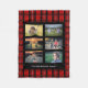 Create your own personal photo collage on red black buffalo plaid background, fleece blanket.