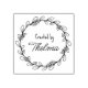This custom "Created by" rubber stamp features a flower frame with custom name.