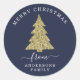 Create Your Own Gold Glitter Christmas Tree Blue Holiday Round Sticker.