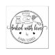 This "Baked With Love" rubber stamp features a baking acessories with custom name.