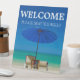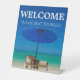 Create Your Own Host Station Welcome Be Seated Sign with 100% custom text (front and back) and beach scene photo. Fill out the text templates with your welcome message or leave as is, and your new sign is ready! Great for coastal area cafes and bars, and can be modified to suit any business or location. If you need help getting your text just right, please feel free to message me! I can also design any other product Zazzle offers with this background in a personalized template on request.