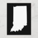 A simple blank modern minimalist design featuring the map shape of the state of Indiana in white against solid black.