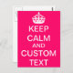 Create Your Own Keep Calm and Carry On Custom Pink Postcard