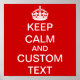 Make your own "Keep Calm and Carry On" poster design using this simple template and how-to instructions. Inspired by an antique WWII British poster slogan, "Keep Calm" designs are very trendy and popular. Use the "Personalize It" field to easily make it your own. Even the white crown can be "changed" if you have your own graphic. Adjust the text fields to say whatever you'd like: your favourite hobby, occupation or funny saying. When you're done, if you need to make more tweaks or resize and move your image or text to fit, click "Customize It" and rearrange however you'd like. Available on more items in our store.