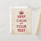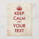 Fully customizable "Keep Calm and Carry On" postcard based on the British WWII poster! This version has dark red text and crown on a vintage paper background. You can easily change the text by entering your own in the text fields, and feel free to add your own images or change out the existing crown image or background. Get creative and express yourself! :-)