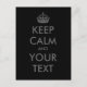 Fully customizable "Keep Calm and Carry On" postcard based on the British WWII poster! You can easily change the text by entering your own in the text fields, and pick your favourite colour for the background! You can even add your own images or change out the existing crown image. Get creative and express yourself! :-)