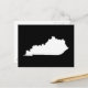 A simple blank modern minimalist design featuring the map shape of the state of Kentucky in white against solid black.